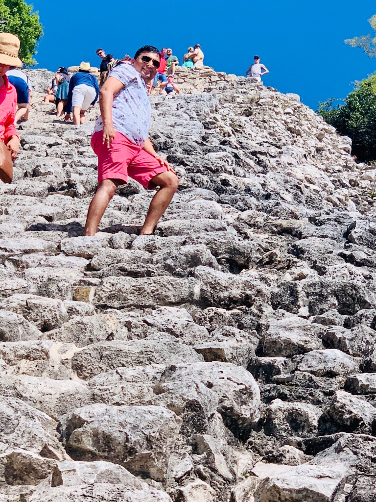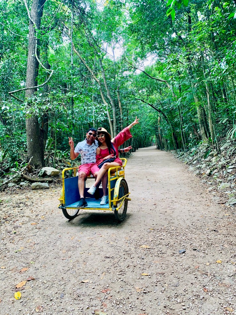 Coba : A nice walk through the jungle part of the ruins ending with the pyramid which we climbed to the top. The view from there was beautiful. The climb down is a little intimidating but a lot of fun. You could rent bikes and ride them around the area too. We got ripped off at the beverages hut next to the pyramid but it was very hot and we needed to cool off after the climb and descent.